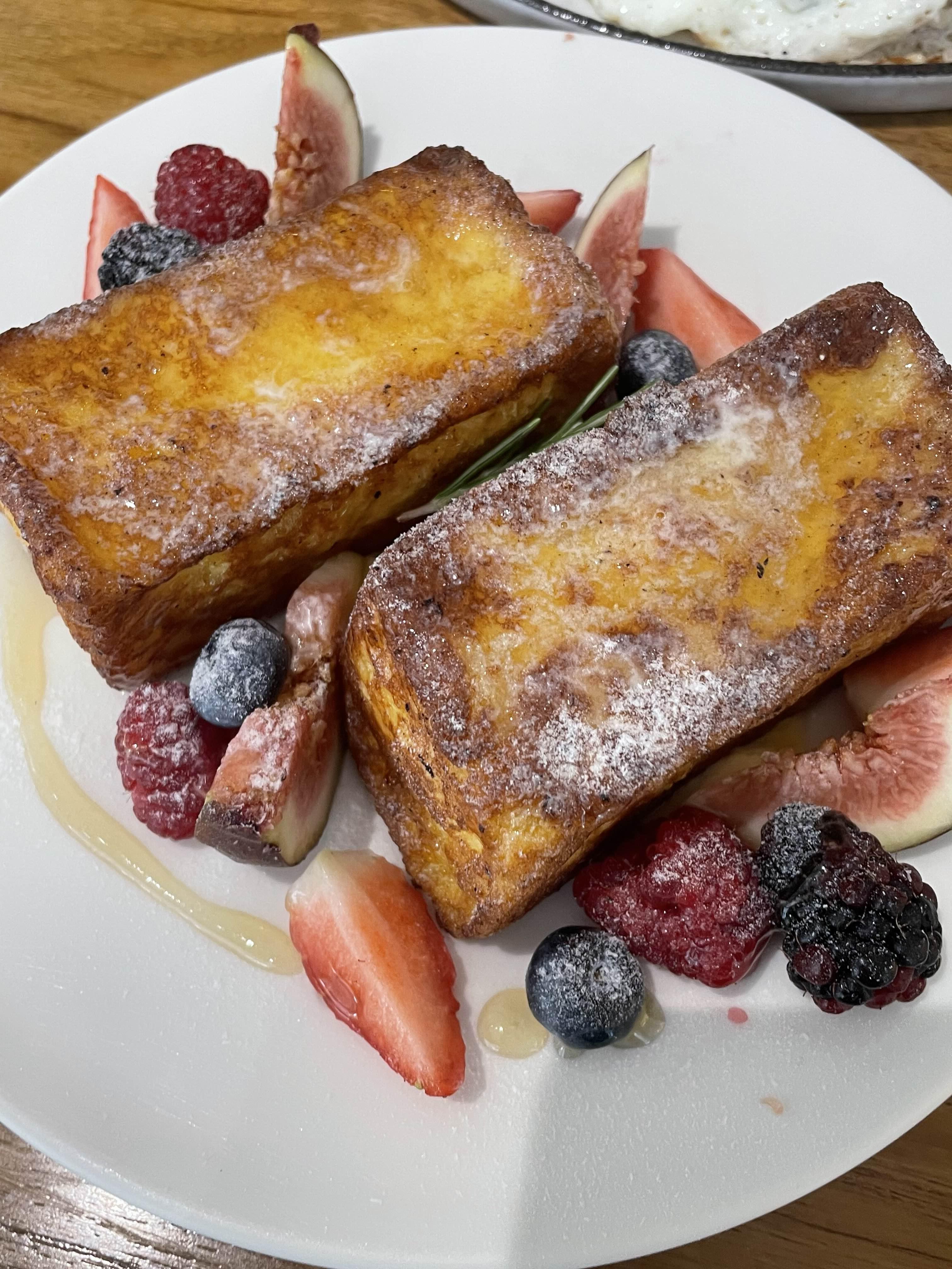 친구랑 브런치를 먹을 예정이라서 친구는 따뜻한라떼랑 나는 아이스 라떼 프렌치 토스트와 Breakfast Plate주문했다